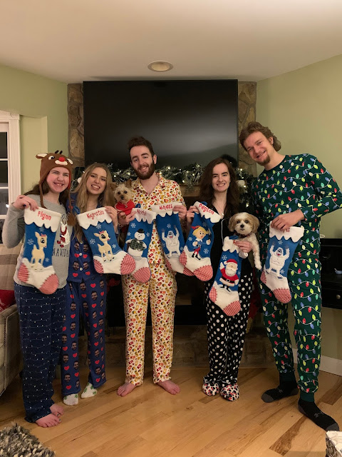 This year was also the first year that we didn't sprinkle reindeer food on the lawn or track Santa on the computer. We did, however, make sure to leave him some fresh baked cookies and milk. Because Santa always needs cookies. This year we also started a new tradition for our Christmas Eve pajamas. Gone are the days of me picking out matching jammies with names on them for my little ones. I wanted to continue the tradition, so I came up with a fun way that was a big hit. I randomly assigned each person, including Steve to make it even, someone to pick out pajamas for. That's it. Then, they sent me the link, I ordered them, wrapped them, and on Christmas Eve, each person unwrapped a new pair of pajamas and tried to guess who chose them! It was so much fun!
